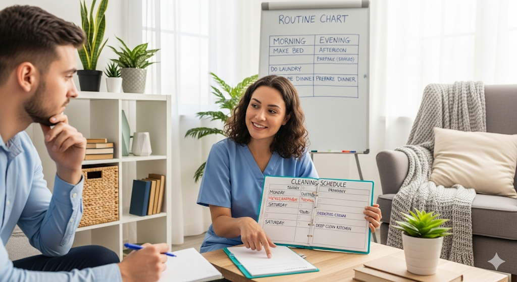 • Household Organisation: Developing routines and strategies for keeping your home clean and organized.